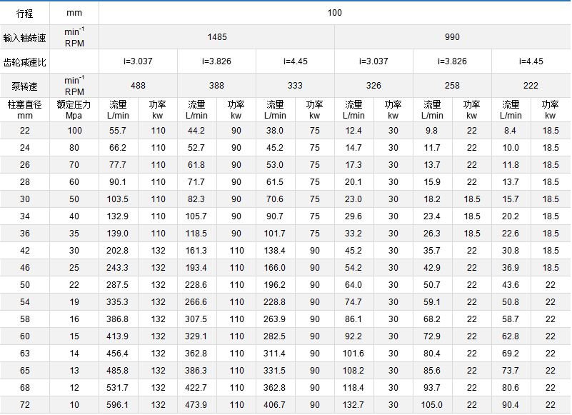 表中技術(shù)參數(shù)作為選型參考,每個品種的泵都裝有安全調(diào)壓閥,泵的壓力可任意調(diào)節(jié)。